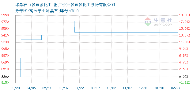 04月24日多氟多化工关于冰晶石的报价为8600元/吨。冰晶石的规格:分子比:高分子比冰晶石;牌号:CM-0。该报价有效期为3天。报价提供方:多氟多化工股份有限公司。