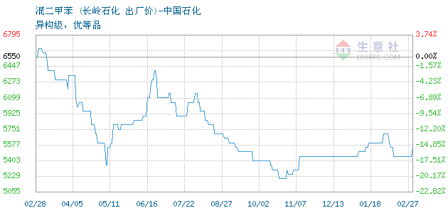 05月26日长岭石化混二甲苯为7900元