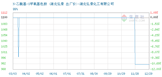 07月04日湖北弘景关于N-乙酰基-5甲氧基色胺的报价为1350元/公斤。N-乙酰基-5甲氧基色胺的规格:99%。该报价有效期为7天。报价提供方:湖北弘景化工有限公司。