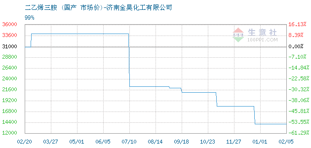 08月09日国产关于二乙烯三胺的报价为35000元/吨。二乙烯三胺的规格:99%。该报价有效期为3天。报价提供方:济南金昊化工有限公司。