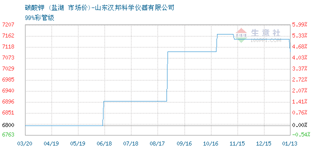 10月16日盐湖关于碳酸钾的报价为9500元/吨。碳酸钾的规格:99%彩管级。该报价有效期为3天。报价提供方:山东汉邦科学仪器有限公司。