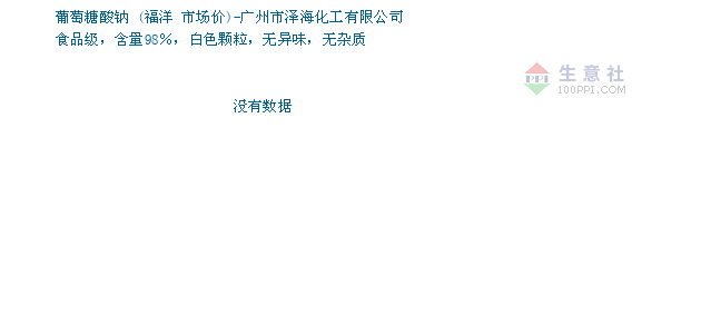 10月28日福洋关于葡萄糖酸钠的报价为5550元/吨。葡萄糖酸钠的规格:食品级,含量98%,白色颗粒,无异味,无杂质。该报价有效期为3天。报价提供方:广州市泽海化工有限公司。