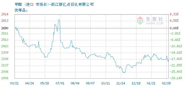 02月06日进口甲醇为2710元