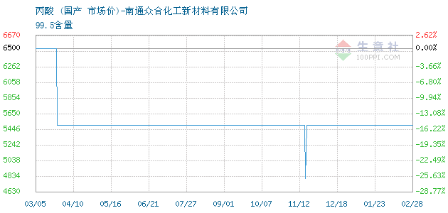 02月17日济南澳辰化工有限公司关于丙酸的报价为6600元/吨。丙酸的规格:99.5含量。该报价有效期为3天。报价提供方:南通众合化工新材料有限公司。