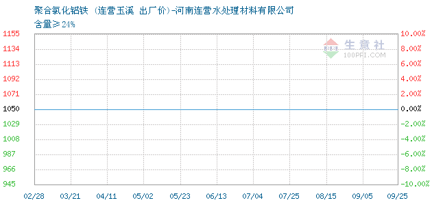 03月04日连营玉溪关于聚合氯化铝铁的报价为1200元/吨。聚合氯化铝铁的规格:含量≥24%。该报价有效期为3天。报价提供方:河南连营水处理材料有限公司。