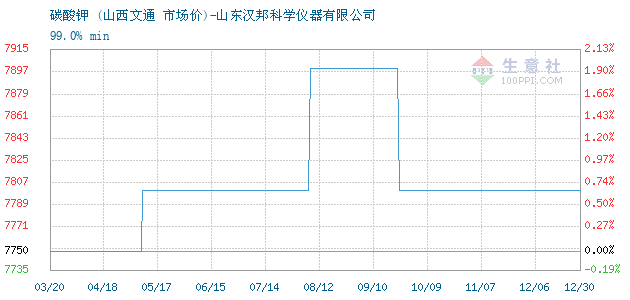 03月23日山西文通关于轻质碳酸钾的报价为9000元/吨。轻质碳酸钾的规格:99.0% min。该报价有效期为3天。报价提供方:山东汉邦科学仪器有限公司。