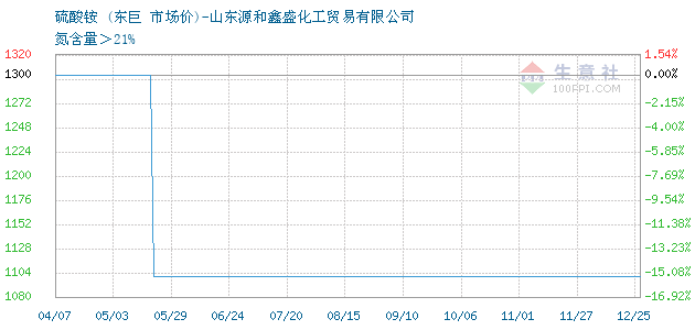 03月30日东巨关于硫酸铵的报价为1450元/吨。硫酸铵的规格:氮含量>21%。该报价有效期为1天。报价提供方:山东源和鑫盛化工贸易有限公司。