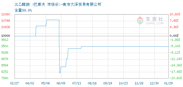 04月18日巴斯夫关于三乙醇胺的报价为9300元/吨。三乙醇胺的规格:含量99.9% 。该报价有效期为7天。报价提供方:南京大泽贸易有限公司。