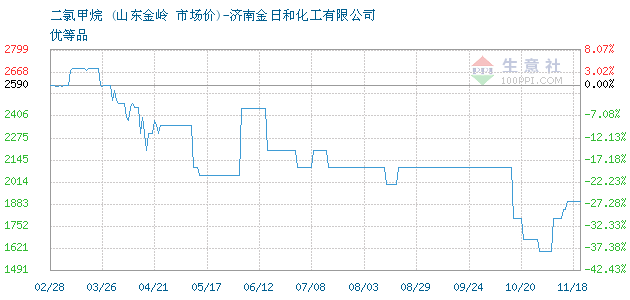 05月11日山东金岭化工股份有限公司关于二氯甲烷的报价为2550元/吨。二氯甲烷的规格:优等品。该报价有效期为3天。报价提供方:济南金日和化工有限公司。