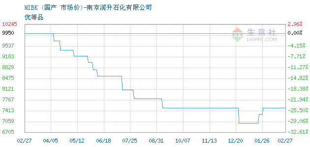 05月19日国产关于MIBK的报价为12200元/吨。MIBK的规格:优等品。该报价有效期为3天。报价提供方:南京润升石化有限公司。