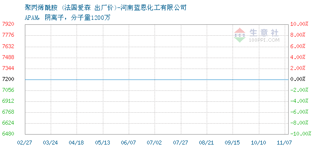 06月14日法国爱森关于聚丙烯酰胺的报价为6800元/吨。聚丙烯酰胺的规格:APAM,阴离子,分子量1200万。该报价有效期为3天。报价提供方:河南蓝恩化工有限公司。