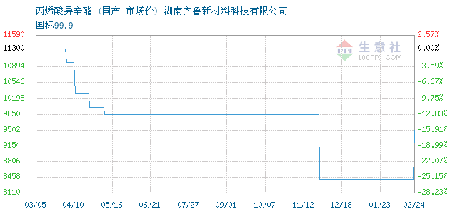 06月16日国产关于丙烯酸异辛酯的报价为11200元/吨。丙烯酸异辛酯的规格:国标99.9。该报价有效期为1天。报价提供方:湖南齐鲁新材料科技有限公司。