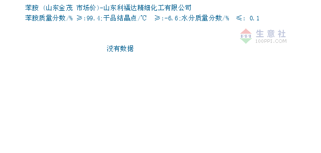 07月03日山东金茂纺织化工集团有限公司关于苯胺的报价为9600元/吨。苯胺的规格:苯胺质量分数/% ≥:99.4;干品结晶点/℃ ≥:-6.6;水分质量分数/% ≤: 0.1。该报价有效期为1天。报价提供方:山东利福达精细化工有限公司。