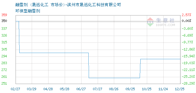 09月13日晟远化工关于融雪剂的报价为300元/吨。融雪剂的规格:环保型融雪剂。该报价有效期为3天。报价提供方:滨州市晟远化工科技有限公司。