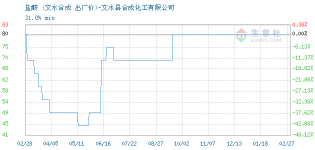 09月15日文水县合成化工有限公司关于盐酸的报价为360元/吨。盐酸的规格:31.0% min。该报价有效期为3天。报价提供方:文水县合成化工有限公司。