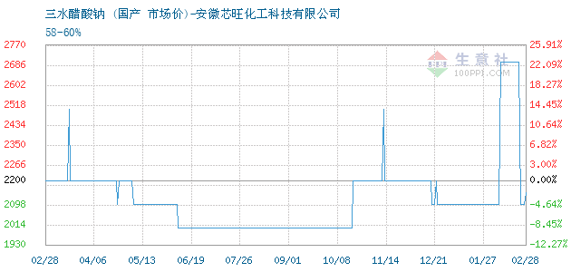 09月22日国产关于三水醋酸钠的报价为3100元/吨。三水醋酸钠的规格:58-60%。该报价有效期为3天。报价提供方:安徽芯旺化工科技有限公司。