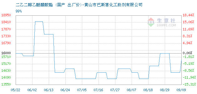 10月10日国产关于二乙二醇乙醚醋酸酯的报价为19500元/吨。二乙二醇乙醚醋酸酯的规格:99%。该报价有效期为7天。报价提供方:黄山市巴斯慧化工助剂有限公司。