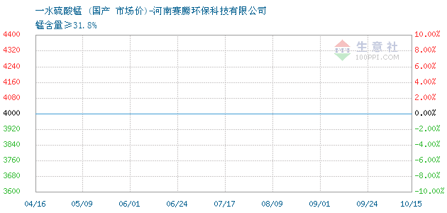 10月20日国产关于一水硫酸锰的报价为4000元/吨。一水硫酸锰的规格:锰含量≥31.8%。该报价有效期为3天。报价提供方:河南赛腾环保科技有限公司。