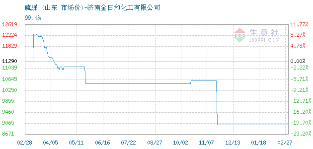 10月23日山东关于硫脲的报价为15000元/吨。硫脲的规格:99.4%。该报价有效期为3天。报价提供方:济南金日和化工有限公司。