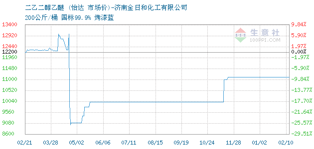 10月24日怡达/天音关于二乙二醇乙醚的报价为13000元/吨。二乙二醇乙醚的规格:200公斤/桶 国标99.9% 烤漆蓝。该报价有效期为3天。报价提供方:济南金日和化工有限公司。
