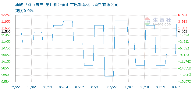 10月31日国产关于油酸甲酯的报价为11000元/吨。油酸甲酯的规格:纯度≥99%。该报价有效期为7天。报价提供方:黄山市巴斯慧化工助剂有限公司。