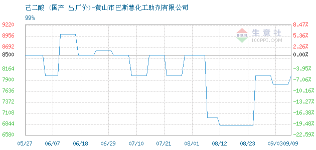 11月08日国产关于己二酸的报价为8800元/吨。己二酸的规格:99%。该报价有效期为7天。报价提供方:黄山市巴斯慧化工助剂有限公司。