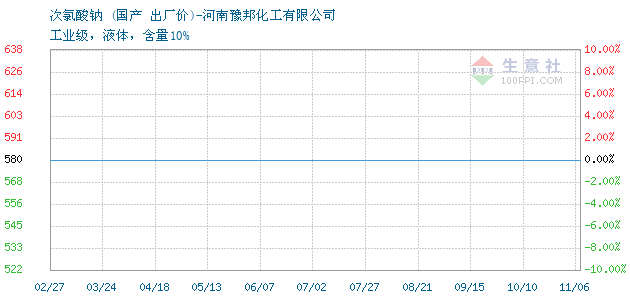 12月12日国产关于次氯酸钠的报价为580元/吨。次氯酸钠的规格:工业级,液体,含量10%。该报价有效期为7天。报价提供方:河南豫邦化工有限公司。
