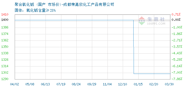 12月12日国产关于聚合氯化铝的报价为1400元/吨。聚合氯化铝的规格:固体,氧化铝含量≥28%。该报价有效期为3天。报价提供方:成都荣嘉欣化工产品有限公司。