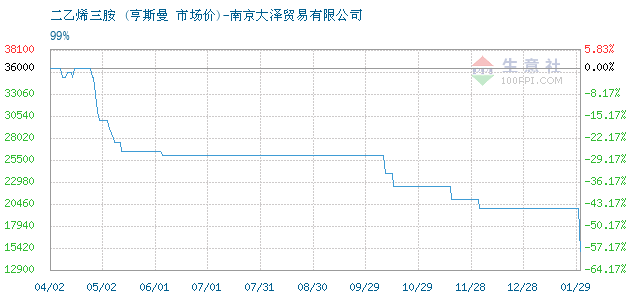 12月12日亨斯曼关于二乙烯三胺的报价为44000元/吨。二乙烯三胺的规格:99%。该报价有效期为3天。报价提供方:南京大泽贸易有限公司。