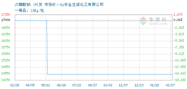12月12日兴发关于次磷酸钠的报价为16500元/吨。次磷酸钠的规格:一等品,25Kg/包。该报价有效期为3天。报价提供方:山东金生润化工有限公司。