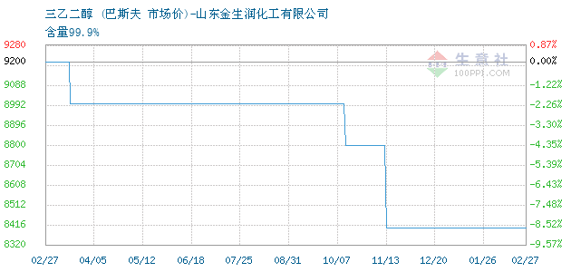 12月12日巴斯夫关于三乙二醇的报价为11000元/吨。三乙二醇的规格:含量99.9%。该报价有效期为3天。报价提供方:山东金生润化工有限公司。