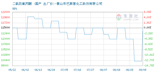 12月18日国产关于二氯四氟丙酮的报价为112000元/吨。二氯四氟丙酮的规格:99%。该报价有效期为7天。报价提供方:黄山市巴斯慧化工助剂有限公司。