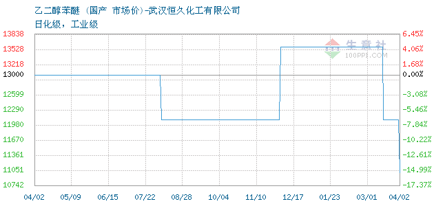 12月18日国产乙二醇苯醚为13000元