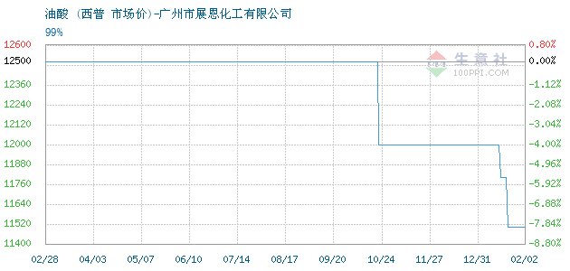 12月19日西普关于油酸的报价为14000元/吨。油酸的规格:99%。该报价有效期为3天。报价提供方:广州市展恩化工有限公司。