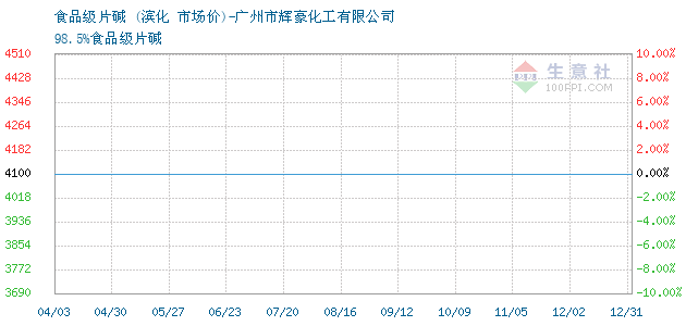 12月20日滨化关于食品级片碱的报价为4100元/吨。食品级片碱的规格:98.5%食品级片碱。该报价有效期为7天。报价提供方:广州市辉豪化工有限公司。