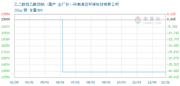 12月20日国产关于乙二胺四乙酸四钠的报价为23000元/吨。乙二胺四乙酸四钠的规格:25kg/袋 含量99%。该报价有效期为7天。报价提供方:河南清迈环保科技有限公司。