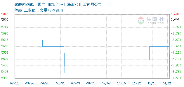 12月21日国产关于碳酸丙烯酯的报价为5500元/吨。碳酸丙烯酯的规格:等级:工业级 ;含量%:≥99.9 ;。该报价有效期为3天。报价提供方:上海溶和化工有限公司。