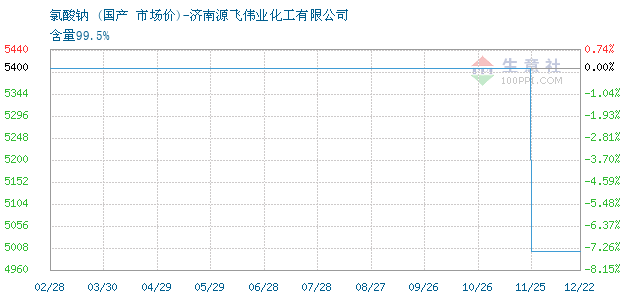 01月02日国内多品牌关于氯酸钠的报价为5500元/吨。氯酸钠的规格:含量99.5%。该报价有效期为3天。报价提供方:济南源飞伟业化工有限公司。