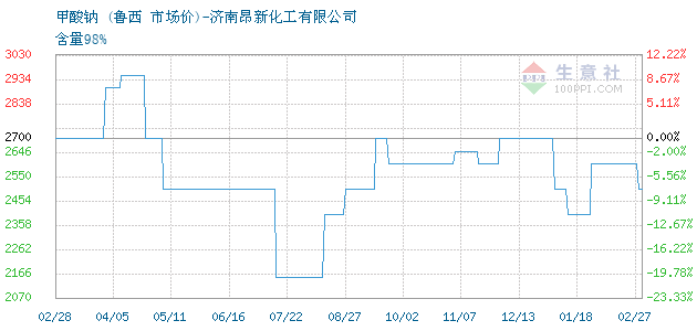 01月09日鲁西关于甲酸钠的报价为3000元/吨。甲酸钠的规格:含量98%。该报价有效期为3天。报价提供方:济南昂新化工有限公司。