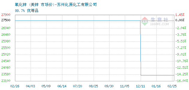01月11日美锌关于氧化锌的报价为25300元/吨。氧化锌的规格:99.7% 优等品。该报价有效期为3天。报价提供方:苏州化原化工有限公司。