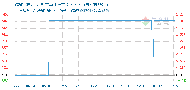 01月19日四川瓮福关于磷酸的报价为6700元/吨。磷酸的规格:用途级别:湿法酸;等级:优等级;磷酸(H3PO4)含量:85%。该报价有效期为3天。报价提供方:宝臻化学(山东)有限公司。